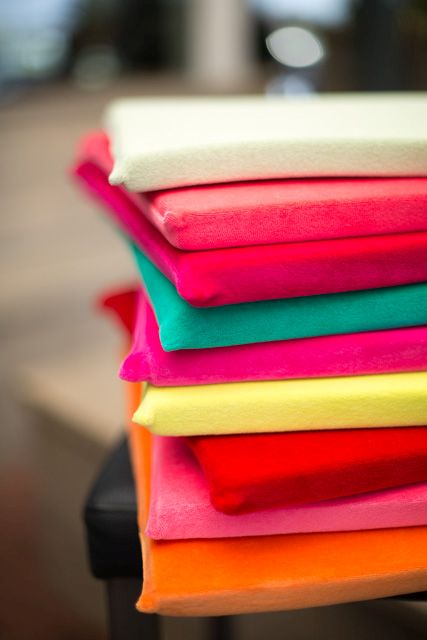 Die Stuhlkissen von farbenfreunde peppen jeden Stuhl und jede Bank auf. Der pflegeleichte Nickystoff bietet dabei ein samtweiches Sitzvergnügen und verliert selbst nach mehreren "Sitzungen" nicht an Leuchtkraft.
